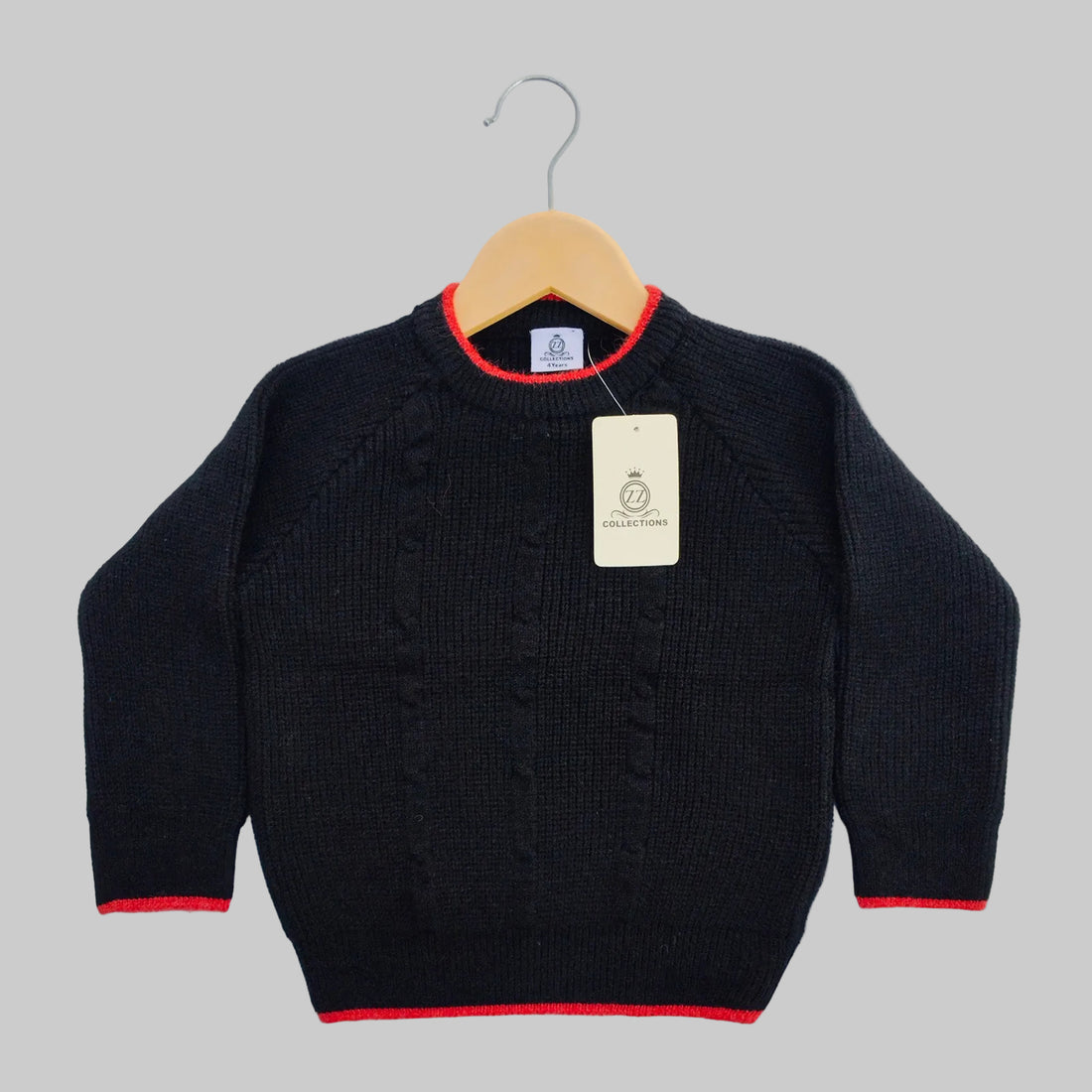 Kids Black Knitted Winter Sweater with Red Trim